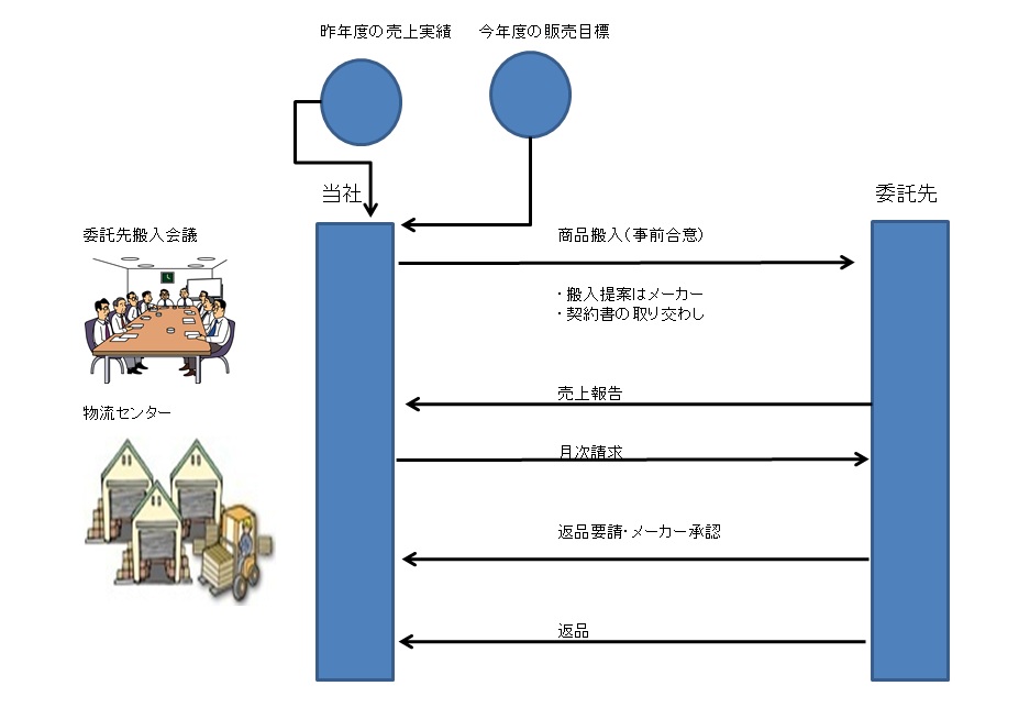 ・契約形態・・・業務委託(消化仕入)、所有権(メーカー)、売上成立で消化売上計上