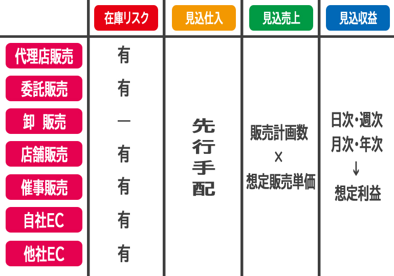 アパレル業では商習慣により商品を委託販売することがあり、在庫リスクをメーカーが負う形になります。そのため、仕入や販売の見通しを常に立てなくてはなりません。